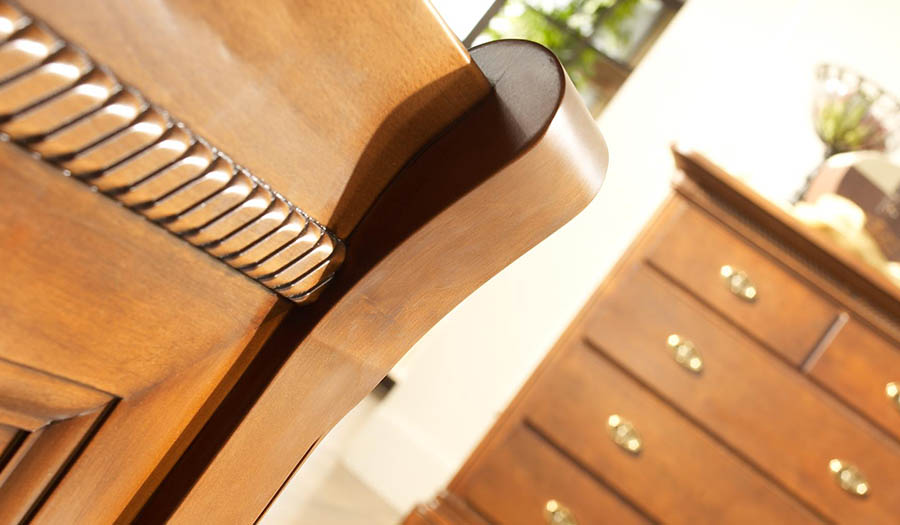 Do produkcji systemu Noblesse wykorzystujemy 70-80% litego drewna olchowego. Głęboka barwa orzecha patynowanego lub świetlisty kolor bursztynu podkreślają ponadczasowy charakter kolekcji. Wykorzystane włoskie uchwyty jak również delikatny efekt kornika nadają mu klasycznej elegancji i szlachetności. Mnogość brył pozwala na zaaranżowanie wnętrza sypialni według Państwa upodobań.